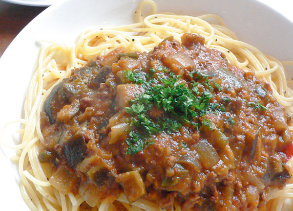 カポナータのミートソースカレー風味 1,296円イタリア料理で前菜の1つカポターナをふんだんに使い、ミートソースを合わせ食べやすく仕上げカレー風味にしました。