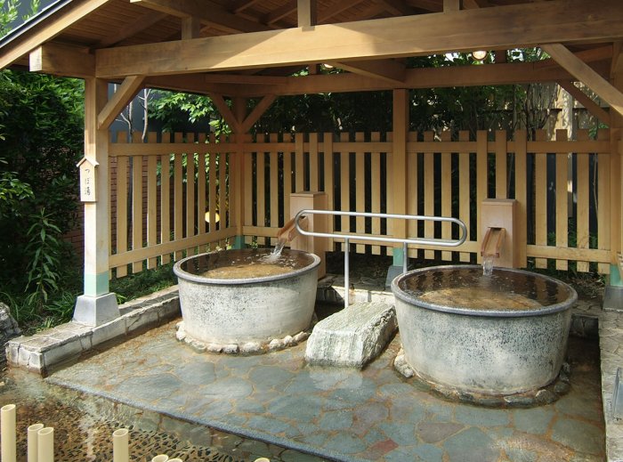 また、落ちてくる湯がはじける時にマイナスイオンが発生し、心身をリラックスさせる効果があることが医学的にも判明しています。 |